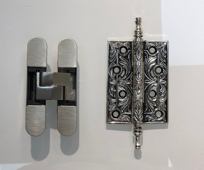При выборе петель важно учитывать вес двери, стиль интерьера и тип установки. Лёгкие полотна до 25 кг подойдут для накладных или ввертных моделей, а массивные конструкции от 40 кг требуют врезных или скрытых петель с подшипниками. Для классических интерьеров подойдут латунные петли с декором, для современных — стальные с матовым покрытием. В тренде — комбинированные решения, где одна часть петли ввертная, а другая накладная, что упрощает монтаж.