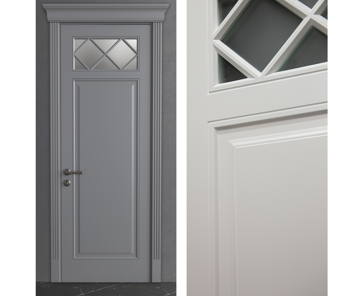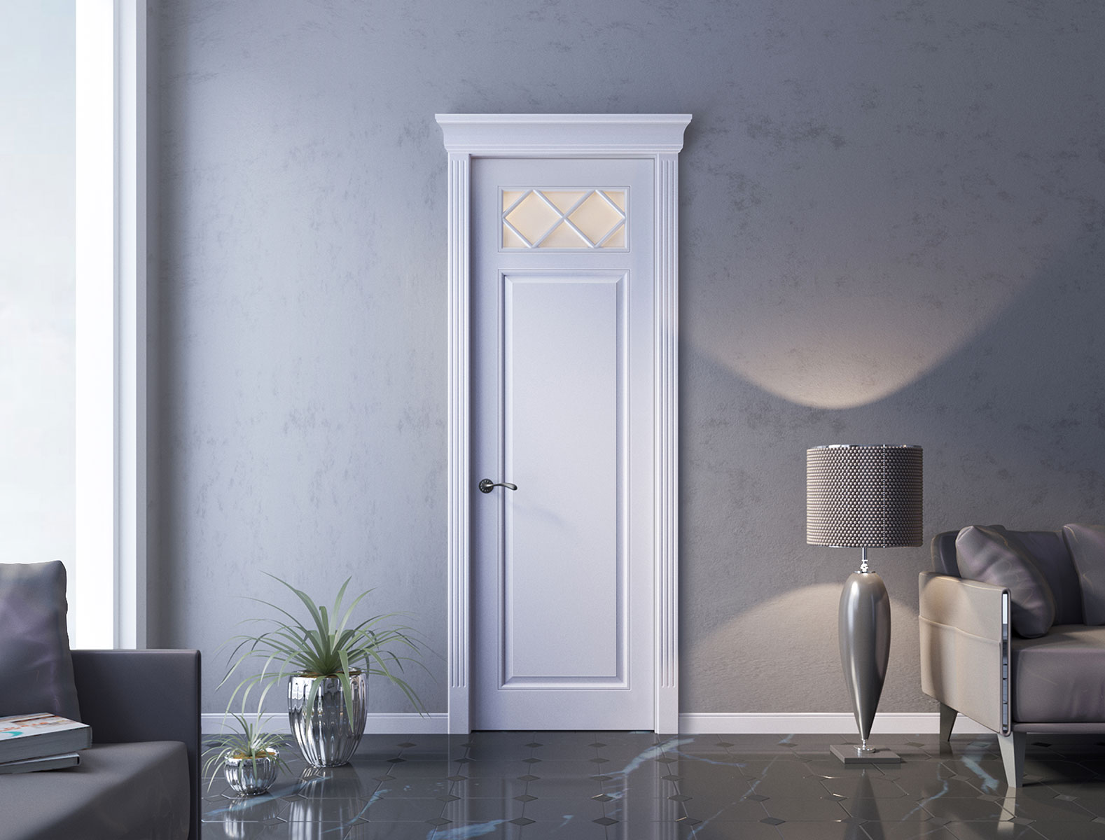 Светотеневой рисунок фрезеровки превращает дверь в произведение искусства, меняющее своё восприятие в зависимости от освещения.