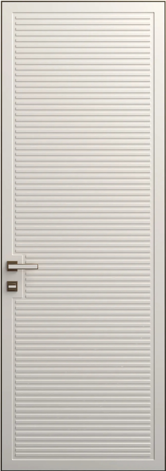 Модель NS 26 построена на принципах строгой геометрии и функциональной эстетики. Вертикальные фрезеровки и широкие плоские молдинги — это не просто декоративные элементы, а продуманная система линий, создающих оптический эффект увеличения высоты проёма. В помещениях со стандартными потолками 2,5–2,7 метра этот приём особенно ценен: дверь визуально «вытягивает» пространство, делая его более воздушным и свободным. Молдинги могут быть выполнены в глянцевом или матовом варианте, что позволяет управлять светом и создавать дополнительные визуальные акценты.