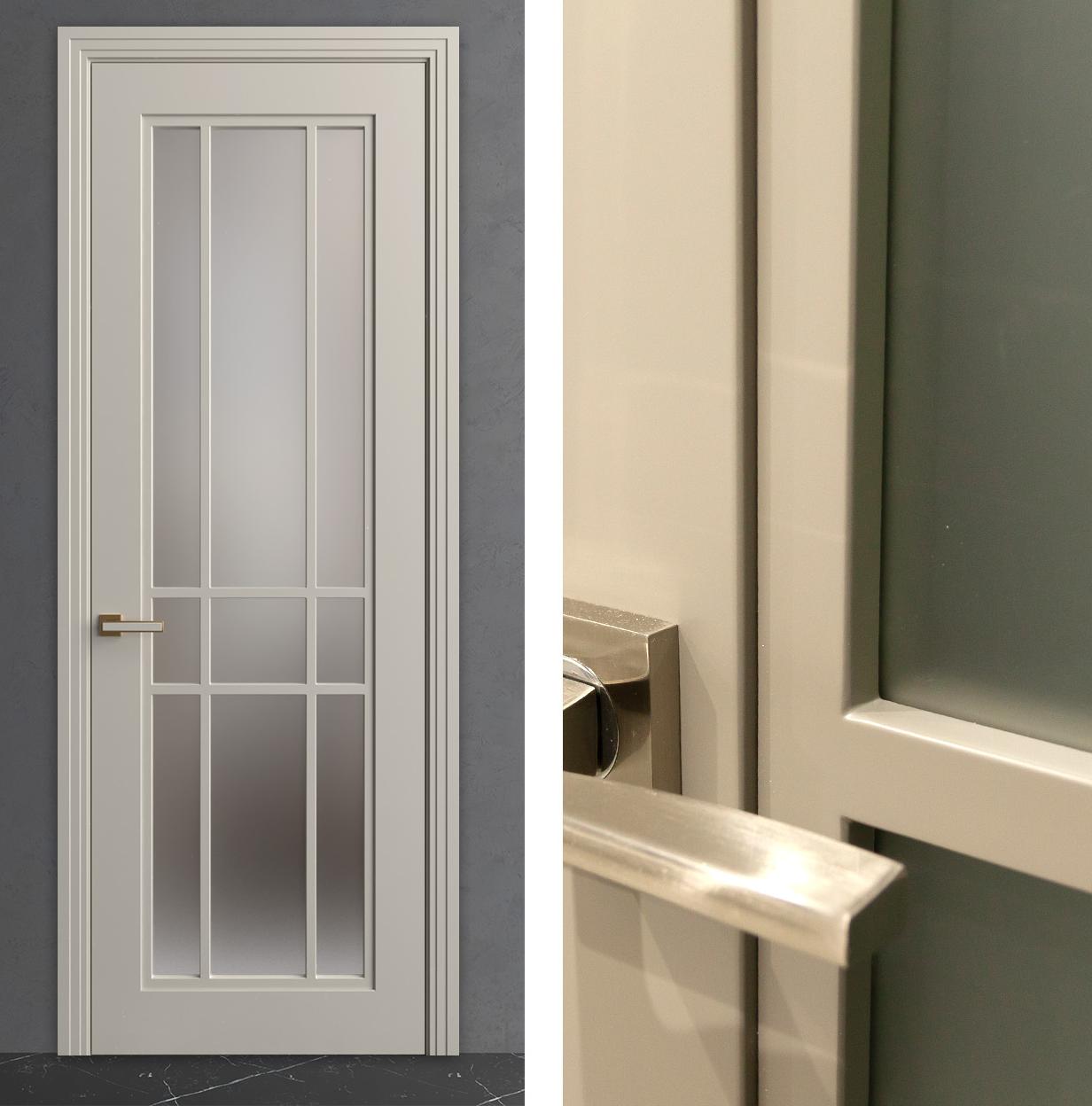 Каркасная конструкция из клеёного бруса с заполнением HDF обеспечивает необходимую прочность полотна, несмотря на экстремально глубокую и частую фрезеровку по всей поверхности. Толщина 38-40 мм гарантирует достаточную массу для стабильного открывания и хорошей звукоизоляции. Эмалевое покрытие, нанесённое по многослойной технологии DREVPROM с промежуточным шлифованием каждого слоя итальянскими лаками, создаёт идеально гладкую поверхность с глубоким насыщенным цветом. Эмалированная кромка полотна завершает дизайн, подчёркивая премиальный статус модели и внимание к деталям.