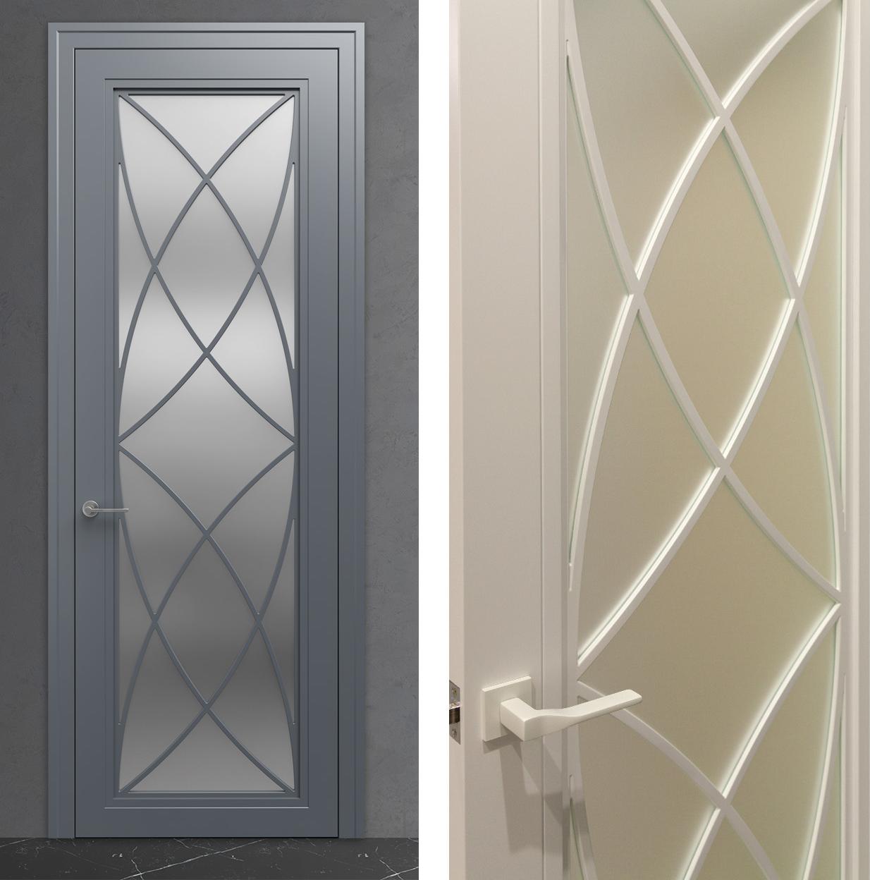 Каркасная конструкция из клеёного бруса с заполнением HDF обеспечивает стабильную геометрию полотна независимо от колебаний влажности и температуры в помещении. Толщина 38-40 мм гарантирует достаточную массу для плавного открывания и эффективной звукоизоляции между помещениями. Эмалевое покрытие наносится по многослойной технологии DREVPROM: каждый слой итальянского лака шлифуется перед нанесением следующего, что создаёт идеально ровную поверхность с насыщенным цветом, устойчивым к выцветанию и механическим повреждениям. Эмалированная кромка полотна завершает дизайн, подчёркивая внимание производителя к каждой детали.