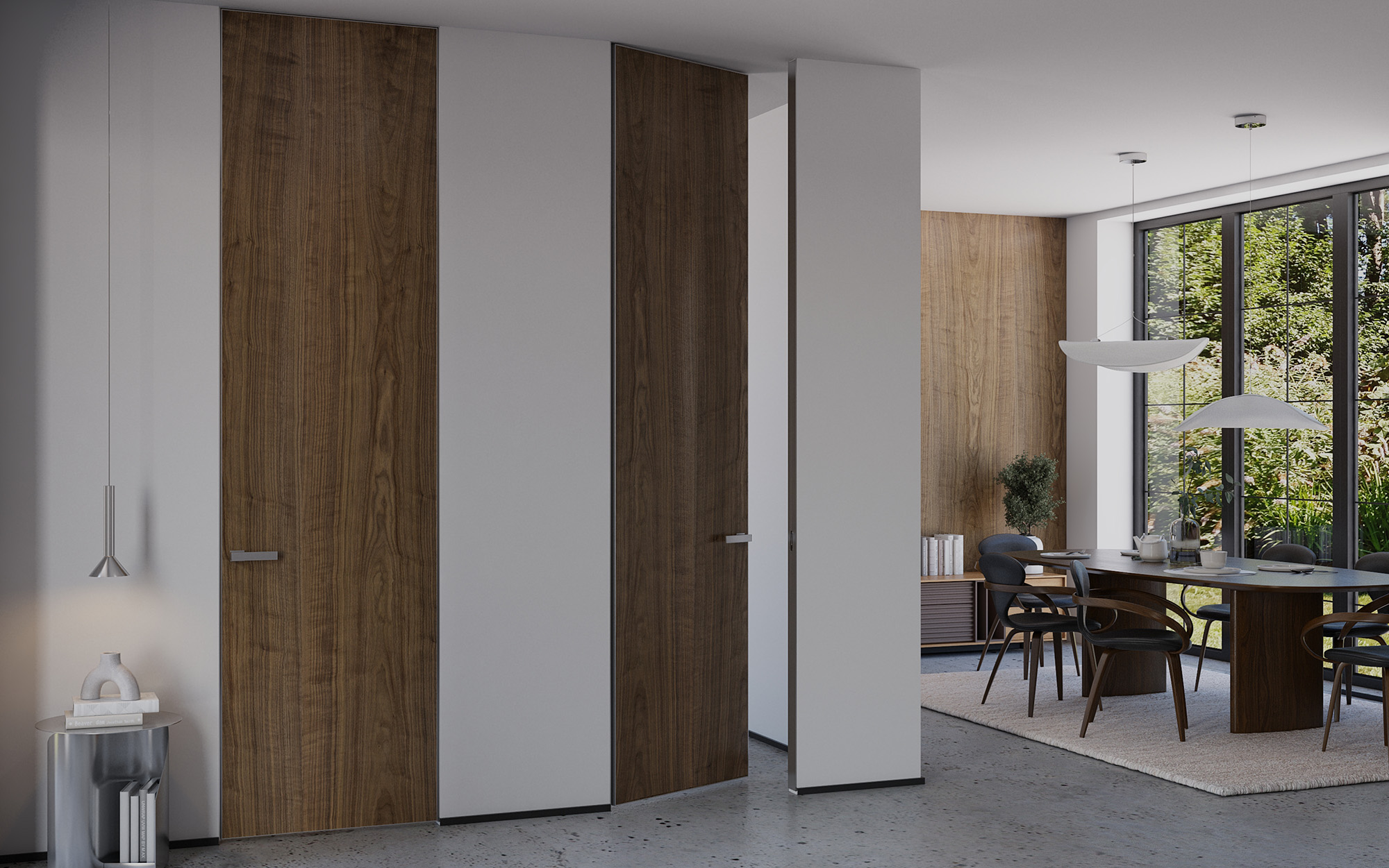 - Богатая цветовая палитра: Пять актуальных оттенков — дуб натуральный, дуб браш-колор, орех, венге и беленый дуб — позволяют интегрировать дверь в интерьеры различной стилистики, масштаба, характера и цветовой температуры.