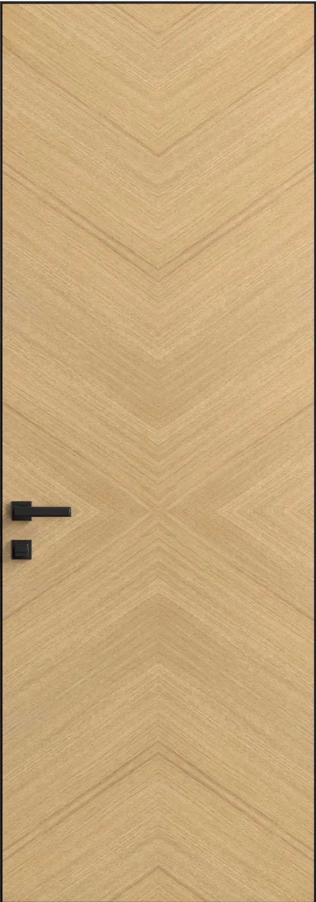 - Дизайн-концепция: Разнонаправленная укладка волокон натурального шпона формирует упорядоченный геометрический рисунок без использования фрезеровки — дизайн создаёт сама структура древесины, что делает каждое полотно уникальным.